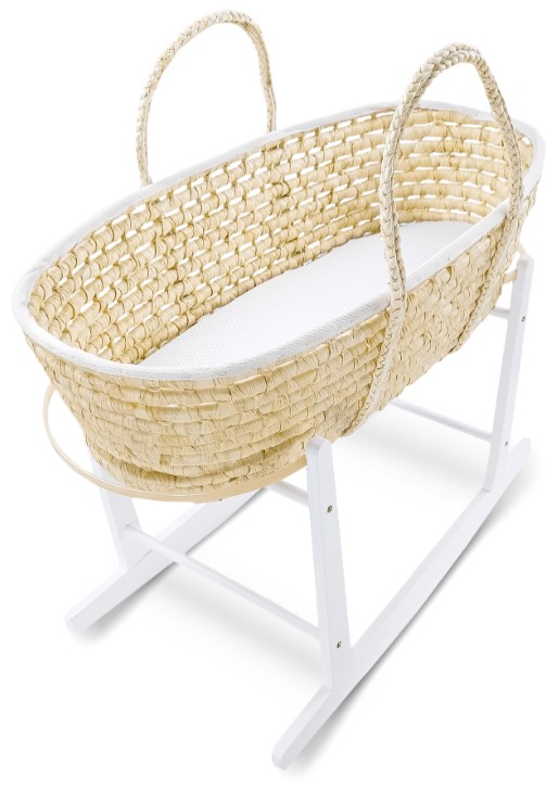 Koš je vyroben z přírodního kukuřičného šustí, je ručně tkaný, proto jeho správná konstrukce zajišťuje správnou cirkulaci vzduchu. Okraje jsou zpevněny bavlněnou stuhou, která nás ochrání před oděrem při vkládání dítěte a dodává mu tak elegantní vzhled. Sada obsahuje tvarem a velikostí vhodnou matraci vyrobenou z vysoce kvalitní polyuretanové pěny potažené měkkou a jemnou tkaninou. Vzhledem k velikosti se doporučuje košík používat do 4-6 měsíců věku dítěte.