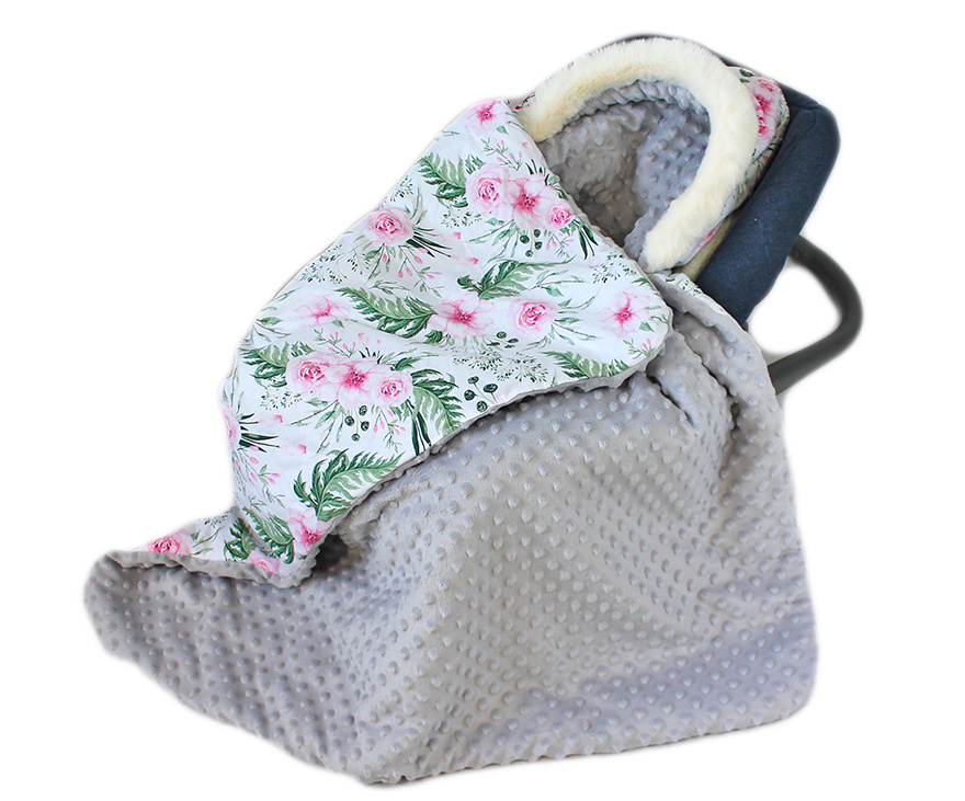 - Baby Nellys Bavlněná oboustranná dečka 3v1 s minky a kožešinkou, 90x90 cm, květinky