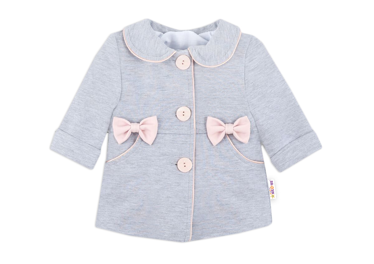 Baby Nellys Dětský bavlněný kabátek s mašličkami, šedý, vel. 86