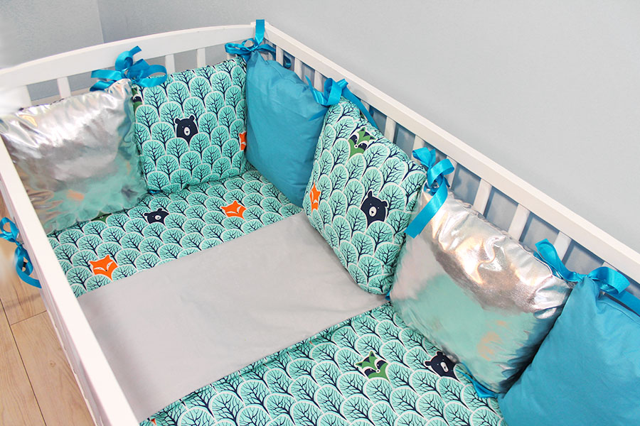 Baby Nellys Polštářkový mantinel s povlečením Shine - lesík tyrkys, 120x90, 40x60cm