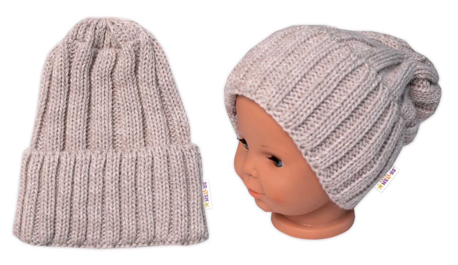 - BABY NELLYS Zimní nadčasová čepice Mom and Baby, béžová