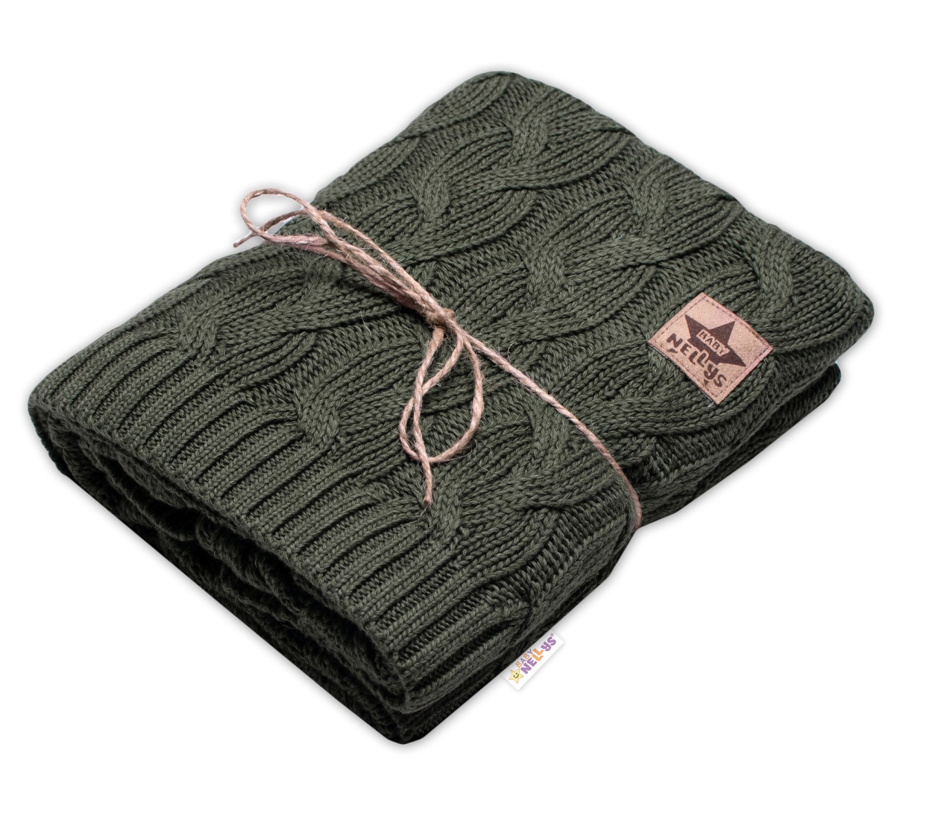 Bambusová dětská pletená deka, vzor pletený cop, 80 x100 cm, khaki