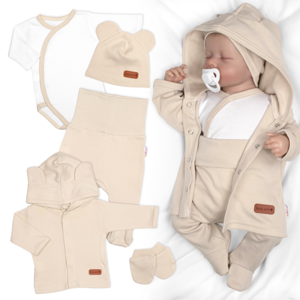 Bavlněná souprava pro miminko do porodnice 5D, Made with love, béžová, vel. 62