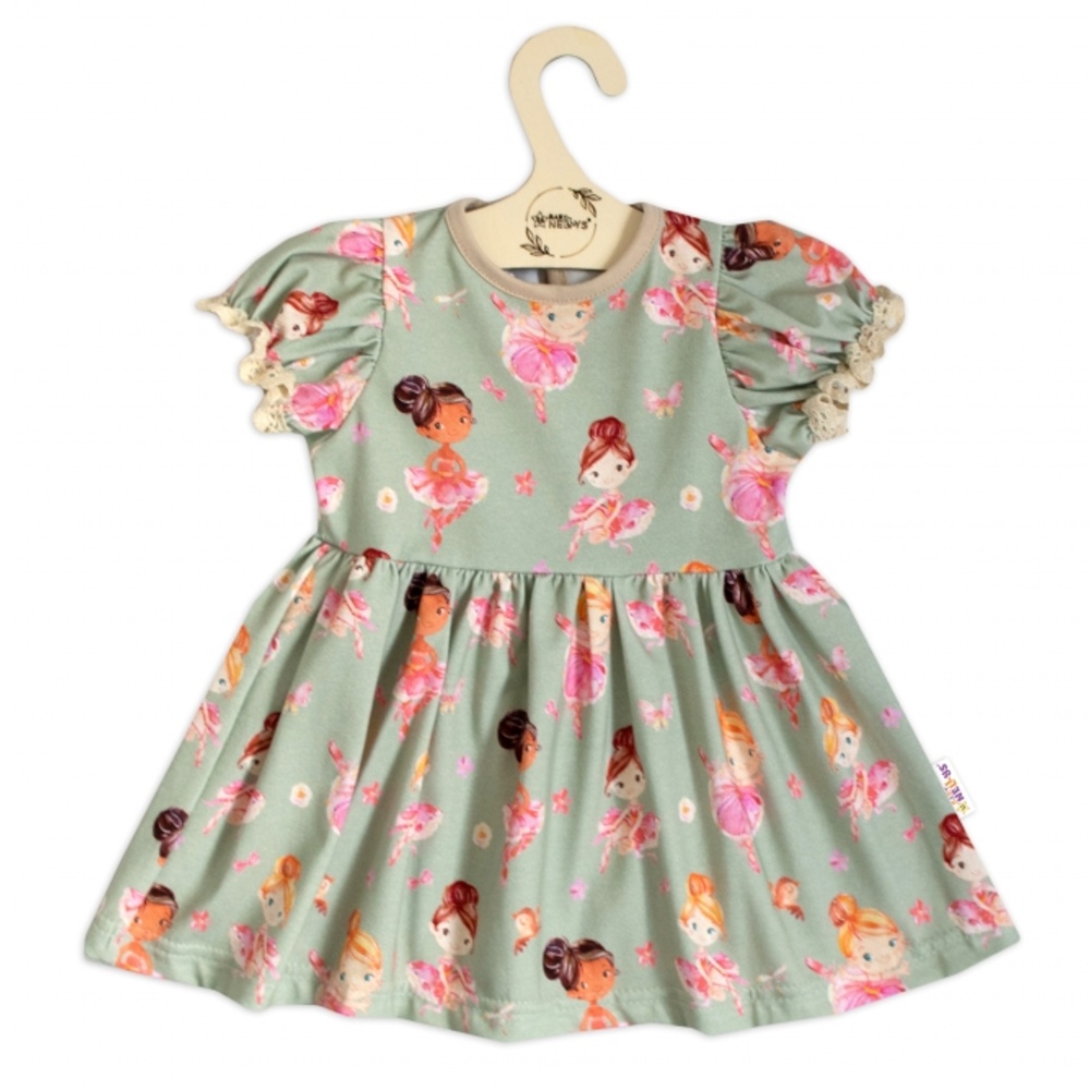 - Bavlněné šatičky s ozdobným rukávkem Baletka, Baby Nellys, olivové, vel. 80