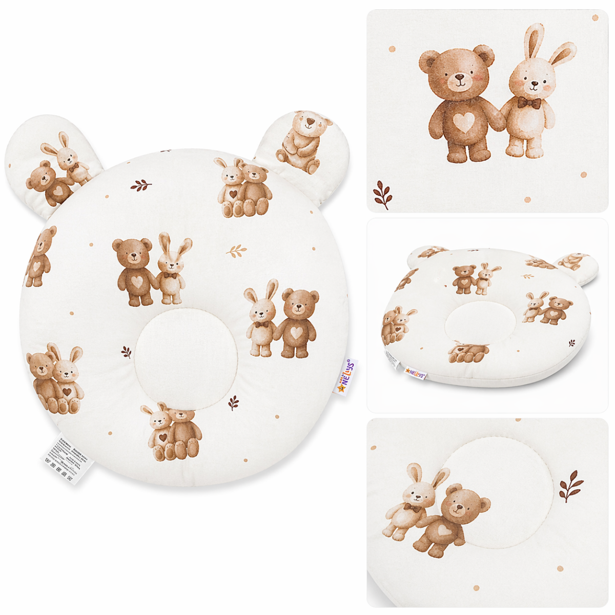 - Bavlněný tvarovaný polštářek Medvídek a zajíček, bílá/béžová