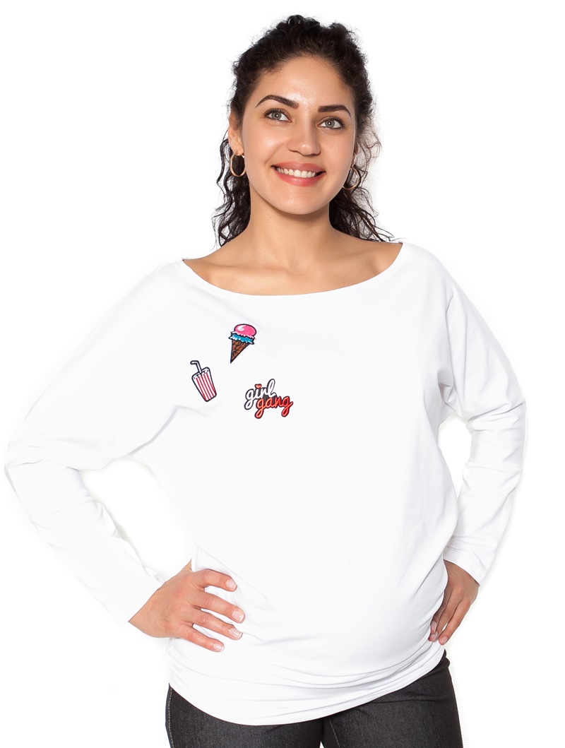 Be MaaMaa Těhotenská mikina, triko s nášivkami - bílé - L