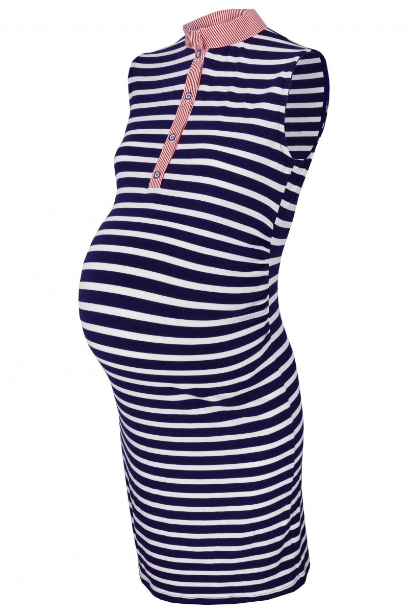 Těhotenské proužkované šaty se stojáčkem.