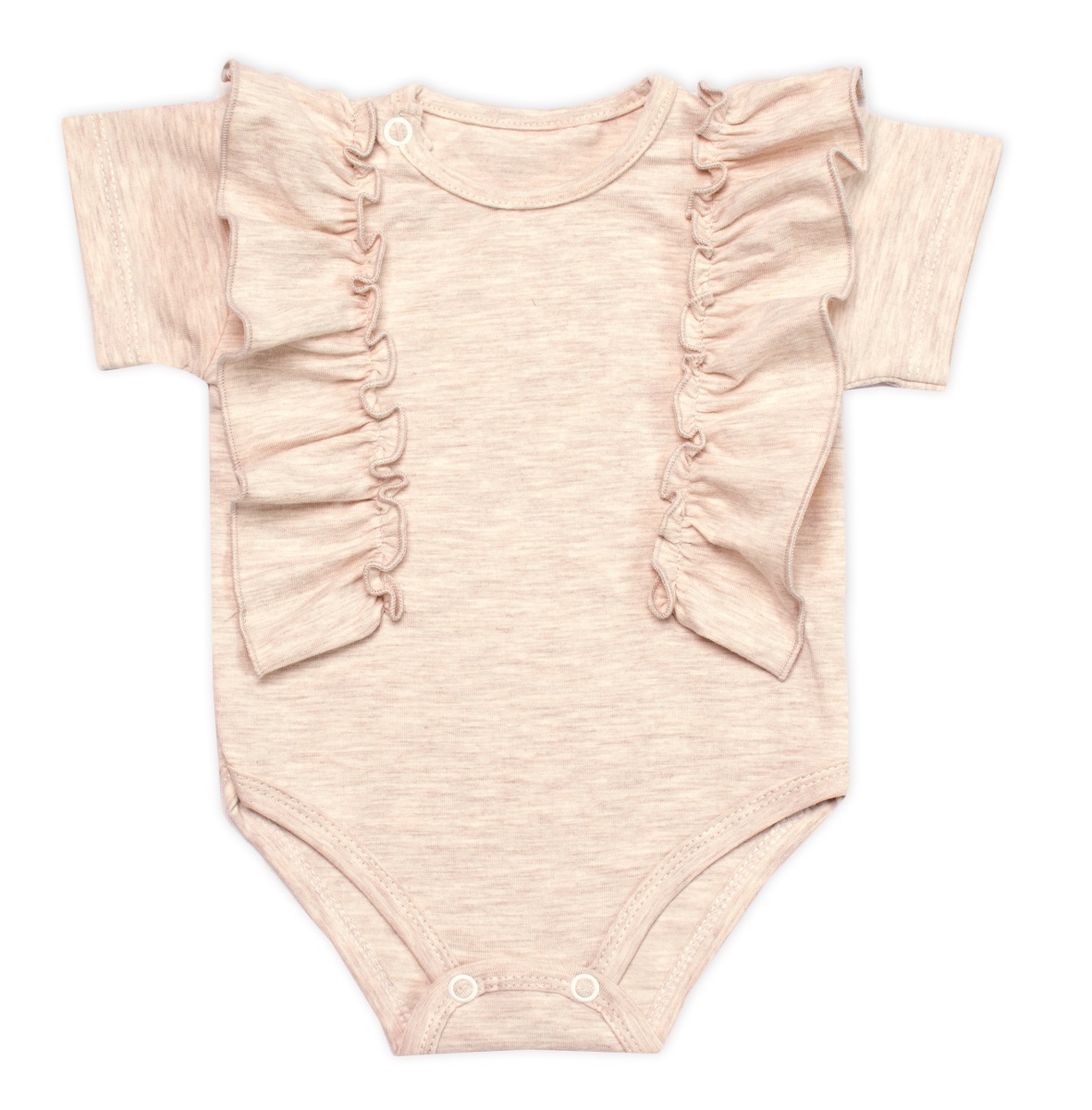 - Body kr. rukáv s volánkem, bavlna, zapínání vzadu, Emily Mrofi, béžový melírek