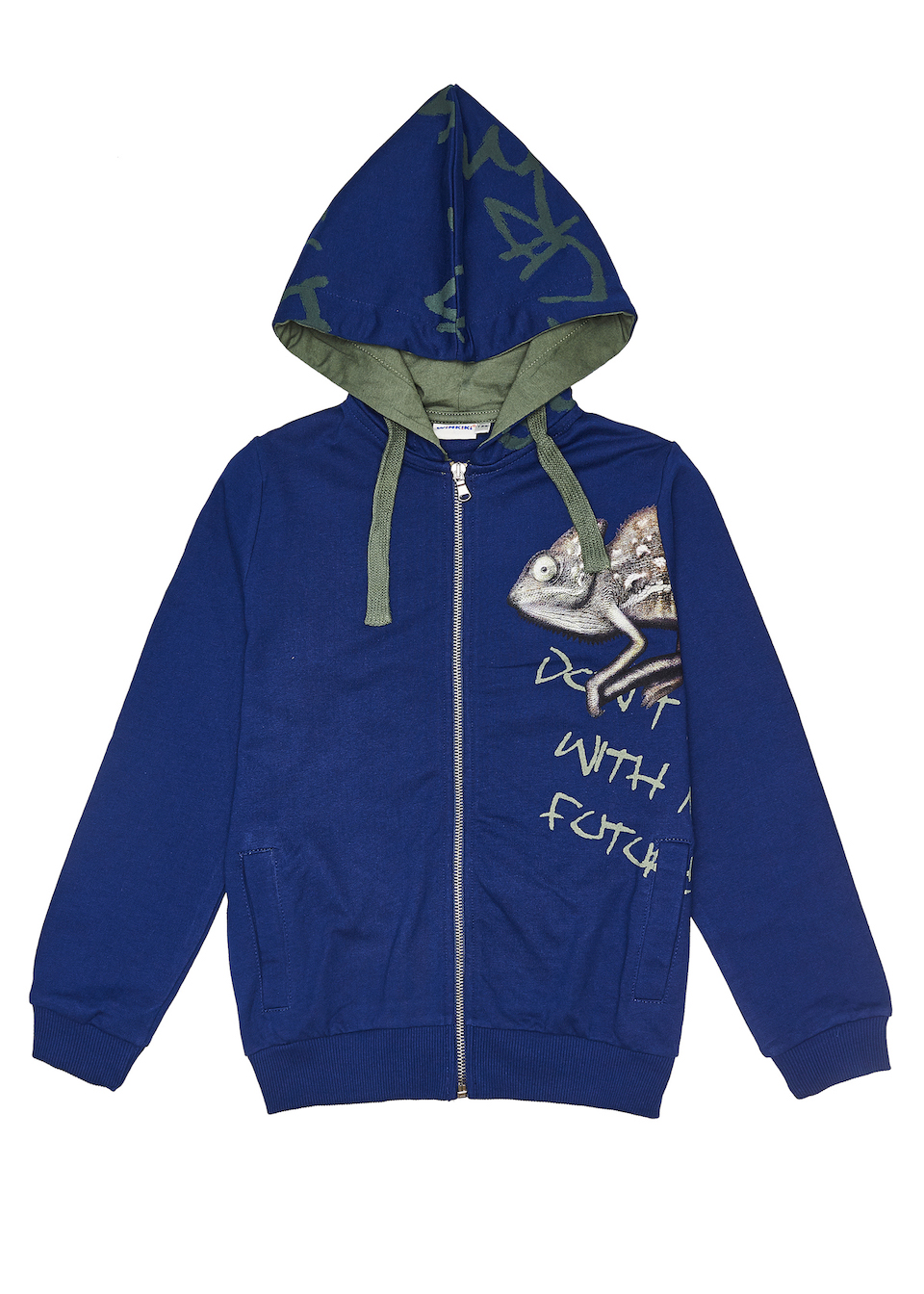 Chlapecká mikina Chameleon s dlouhým rukávem a s kapucí. Kapuce je na zavazování a mikina je se zapínáním na zip po celé délce mikiny. Na bočních stranách jsou kapsy. Neokoukaný design. Dostupné barvy: NAVY, Khaki Teplý a měkký materiál - 1