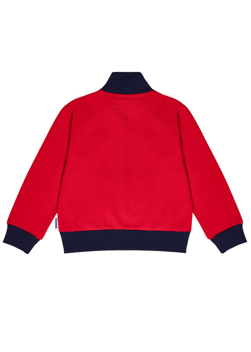 Chlapecká mikina Tree Stars s dlouhým rukávem v červené barvě. Na levé straně na prsou je odznak Tree Stars. Na přední straně jsou velké kapsy. Stojací límeček a zapínání na zip po celé délce mikiny vás ochrání při nepřízni počasí. Konce ru