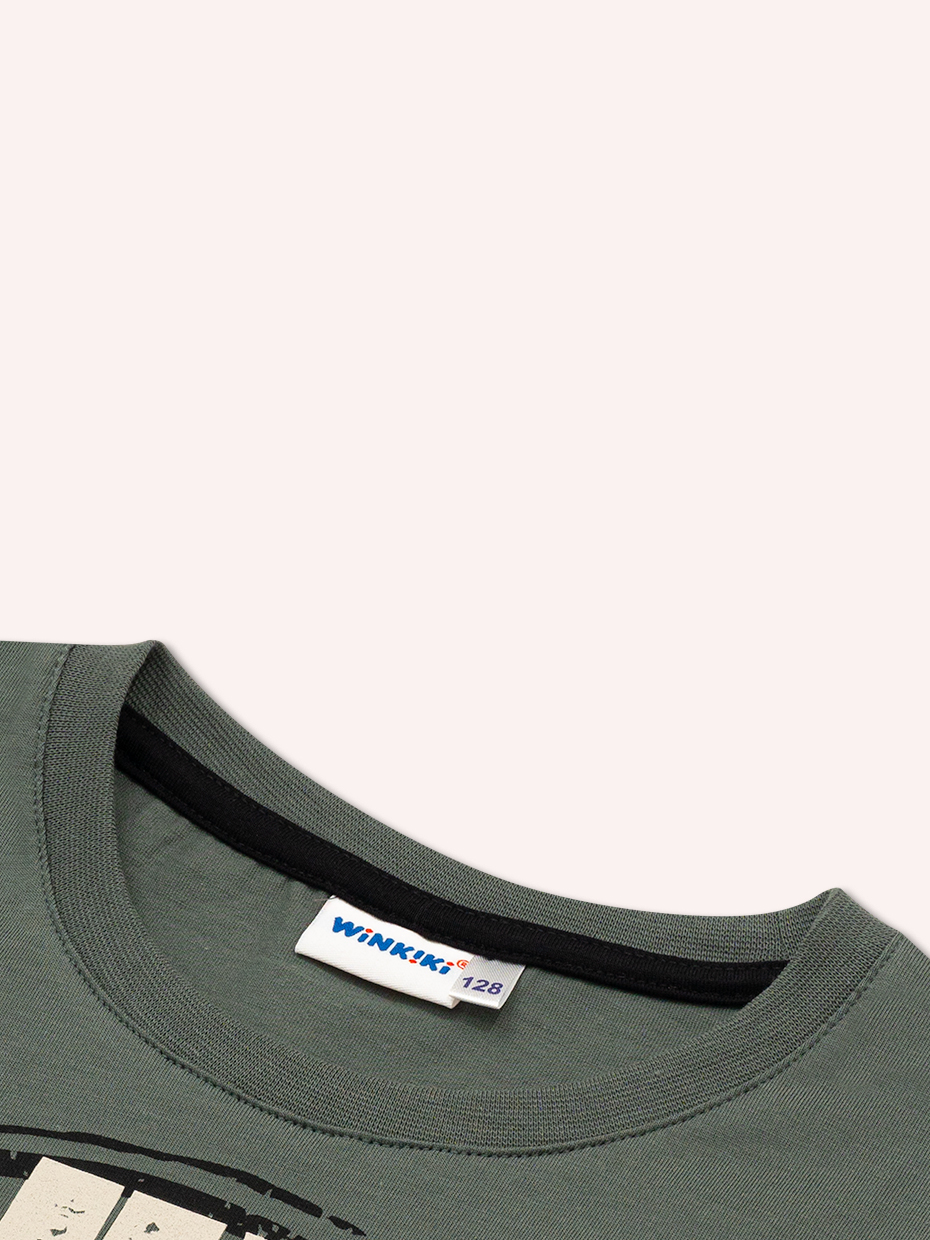 Chlapecké tričko Music z kolekce Bestseller. Zajímavý design, kvalitní látka a barvy, které po vyprání nevyblednou. Vhodné do školy i na ven. Barva: Khaki/Černá. Materiál: 100% bavlna. Velikosti: 128 - 152.