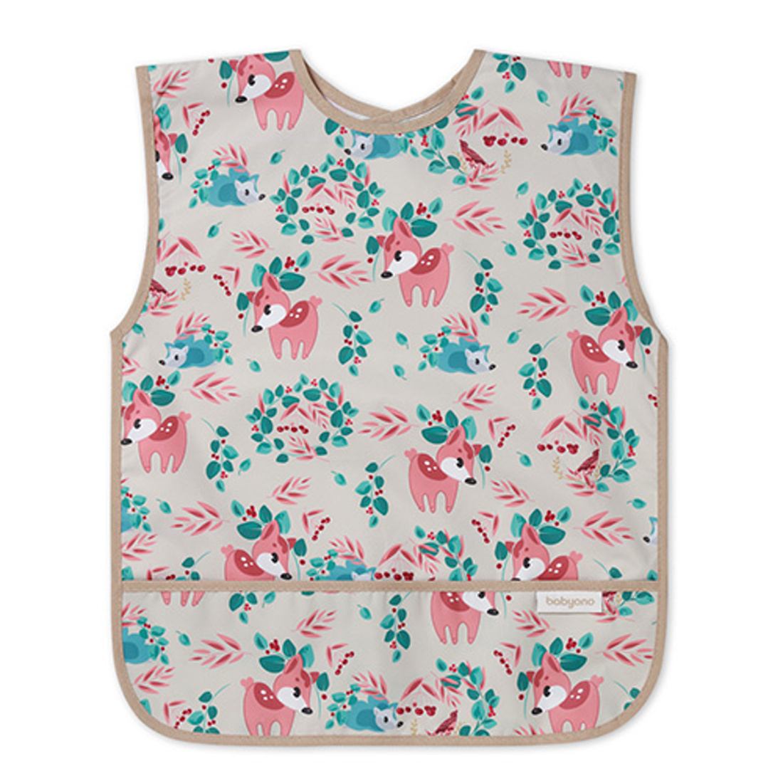 Dětský bryndák, zástěrka s kapsičkou Srneček, béžová
