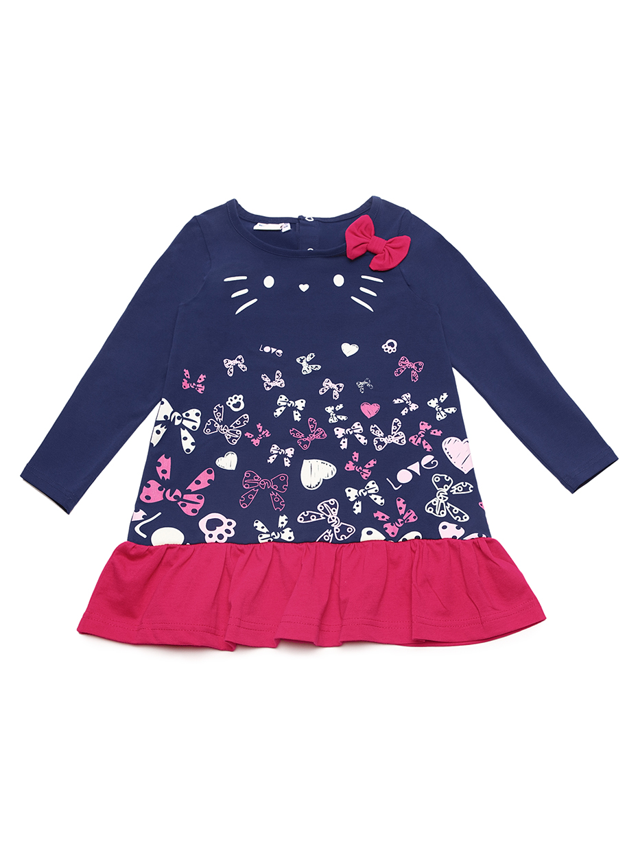 Dívčí šaty Motýlci s dlouhým rukávem v mátové barvě s růžovým volánem. Na přední straně jsou motýlci a na ramenní hezká mašle. Příjemný a pružný materiál. 95% bavlna a 5% elastan. Velikosti 98 - 122.