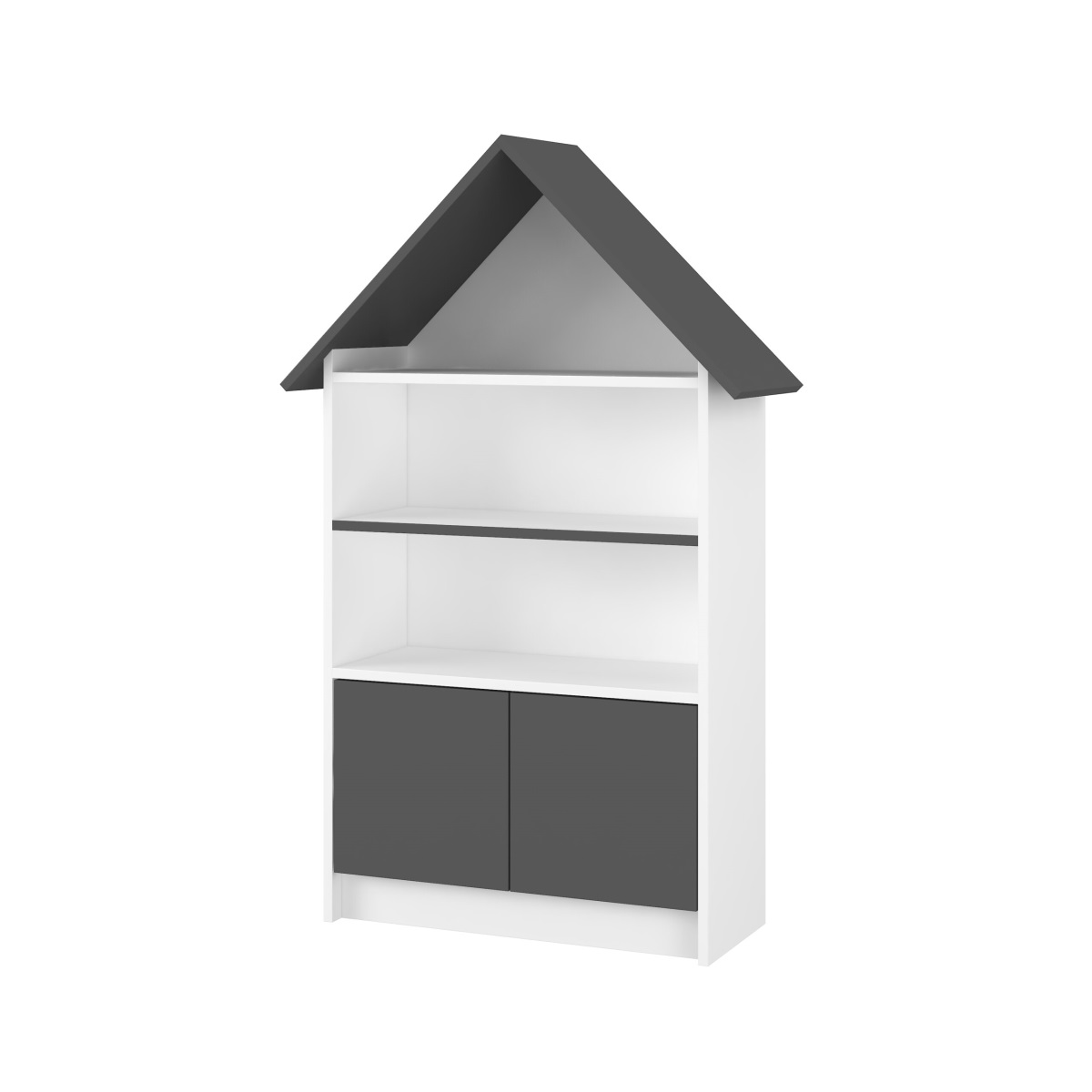 Dřevěná knihovna/skříň na hračky Nellys Domeček, bílá/antracitDoručení do (dny):62 821 Kč/ ks