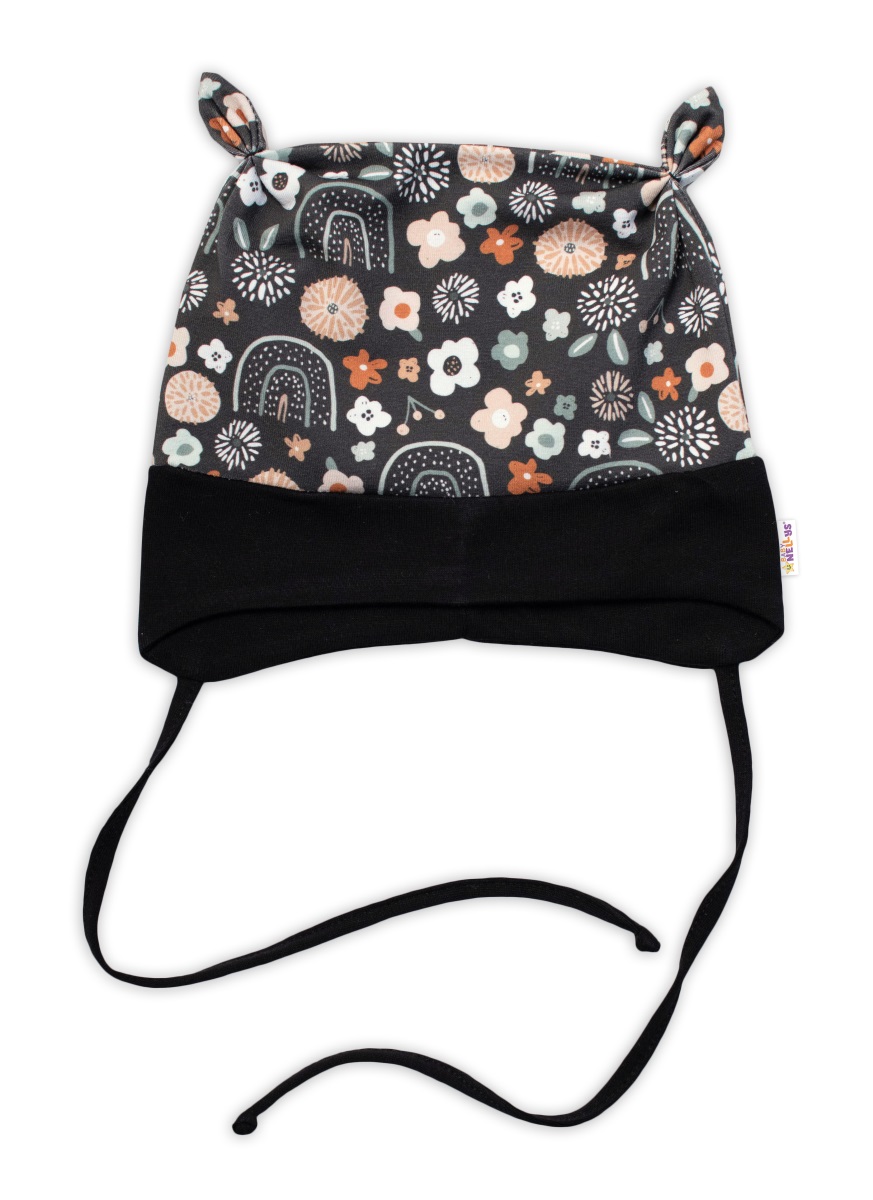 - Kojenecká čepička uzlíček na zavazování - Palouček, grafit, vel. 68/74