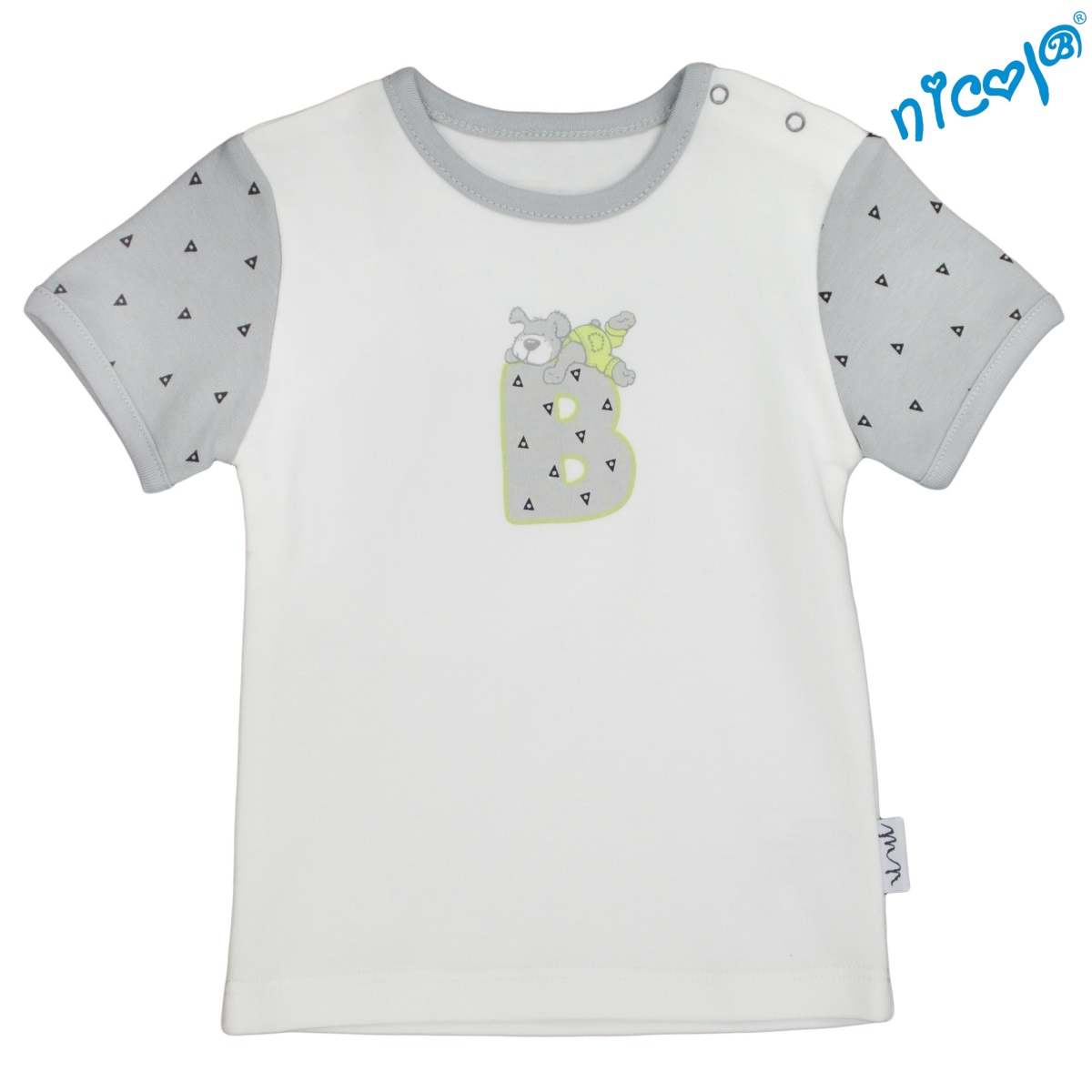 - Kojenecké bavlněné tričko Nicol, Boy - krátký rukáv, šedé/smetanová, vel. 74