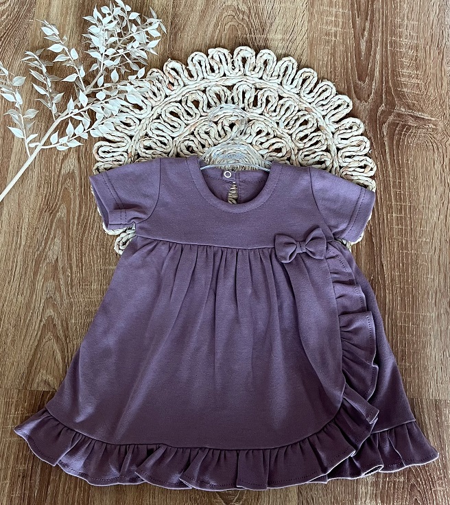 Kojenecké šaty s volánky, kr. rukáv, Mamatti, Puntík, švestková