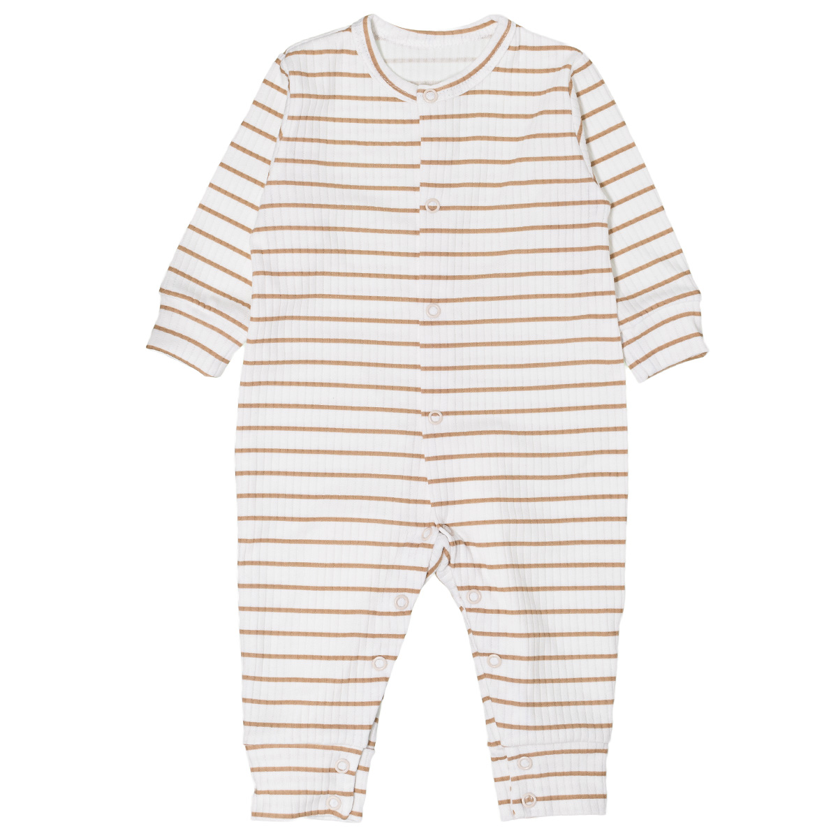 - Kojenecký overálek, pyžámko bez šlapek, bavlna Proužek, béžový