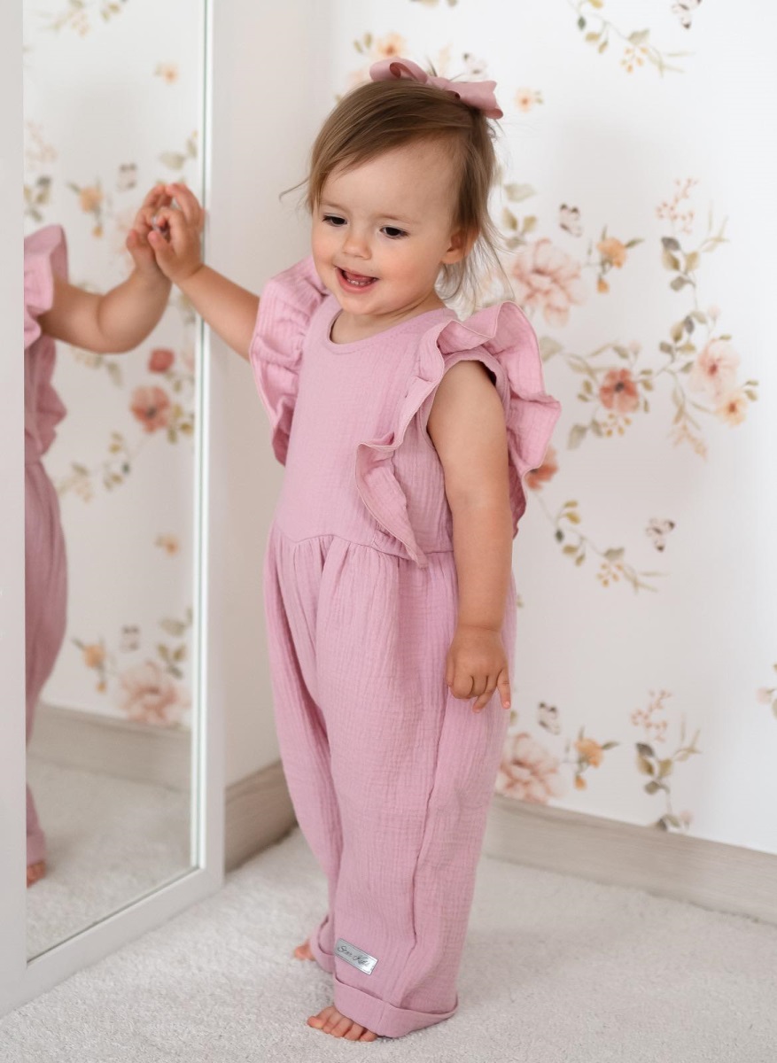 Letní mušelínový overálek pro holčičky s volánkem Star - starorůžová, vel. 110