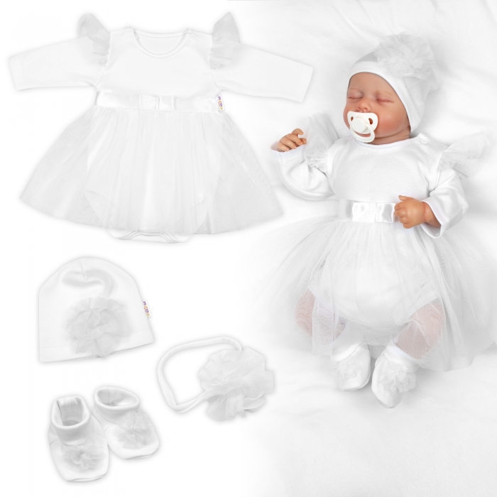 - Luxusní 4D slavnostní sada oblečení pro miminko Girl - bílá, vel. 74
