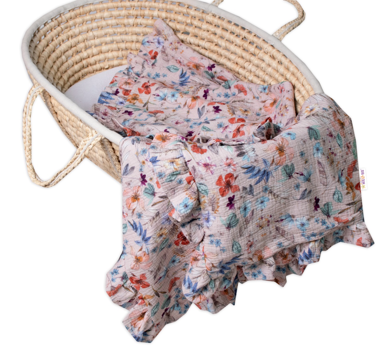 Luxusní dvouvrstvá mušelínová deka s volánky, Květy, Baby Nellys 120 x 120 cm, pudrováSkladem1 234 Kč/ ks