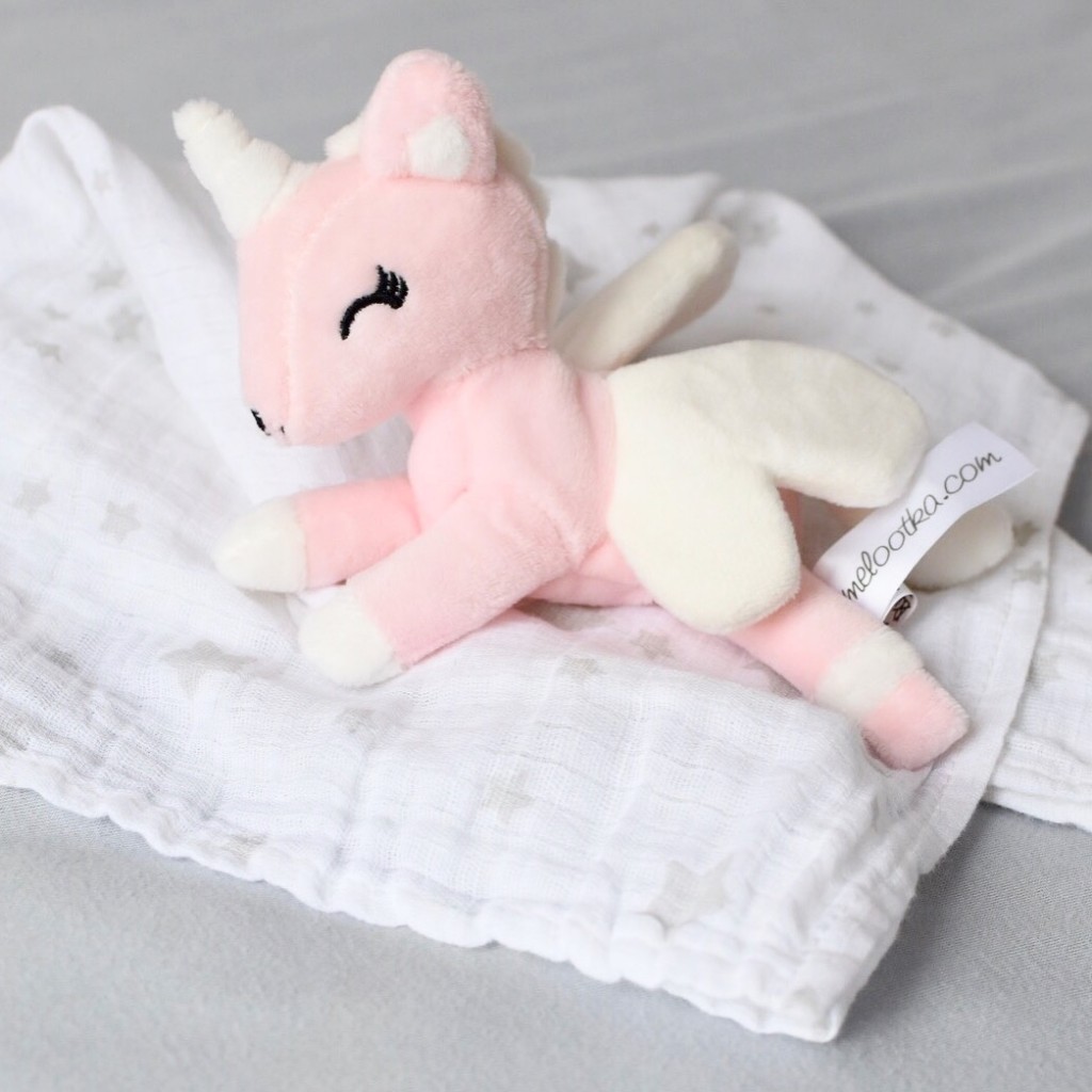 Mini jednorožec Metoo s mušelínovou plenkou.