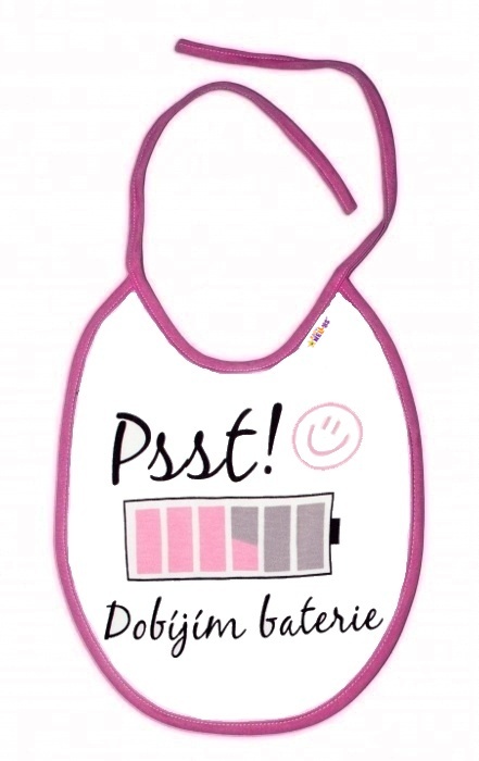 Nepromokavý bryndáček Psst! Dobíjím baterie, 24 x 27 cm - růžový, bíláSkladem117 Kč/ ks