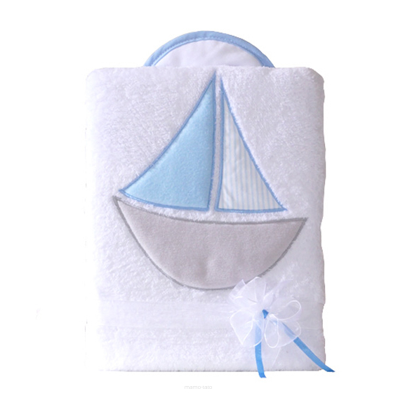Oboustranná chlupáčková dečka s vyšívkou 75 x 90 cm, Lodička, bílá/modráDoručení do (dny):6352 Kč/ ks