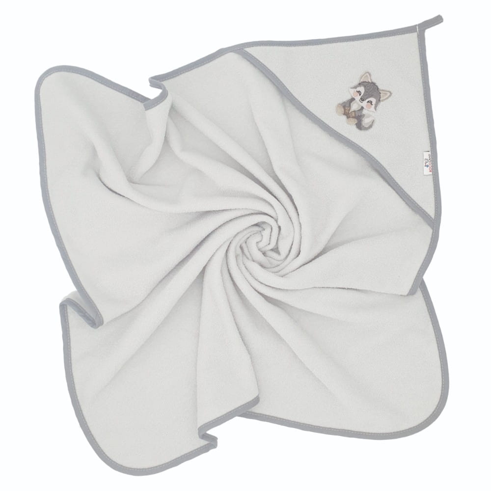 Osuška s kapucí a oušky Vlček, 100x100 cm - šedý