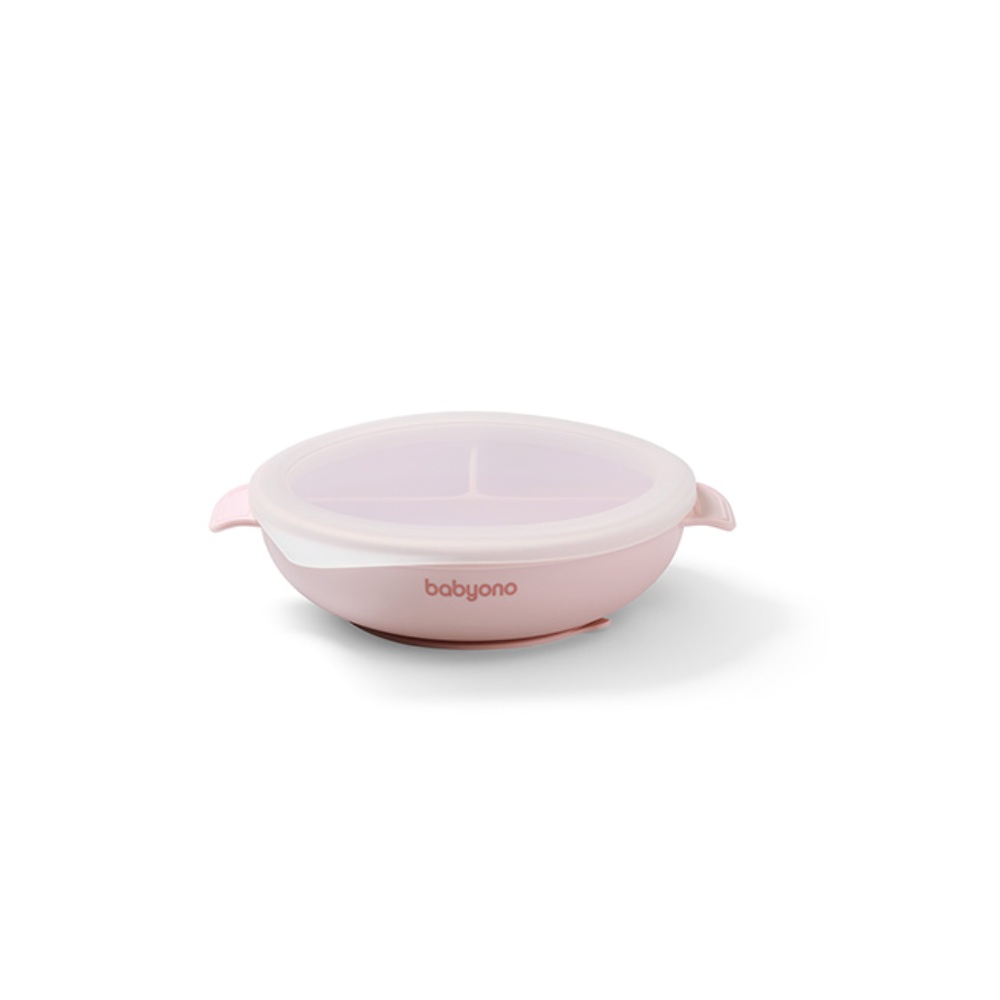 Dělený talíř s přísavkou a víčkem BabyOno – ideální pro zavádění příkrmů a metodu BLW.