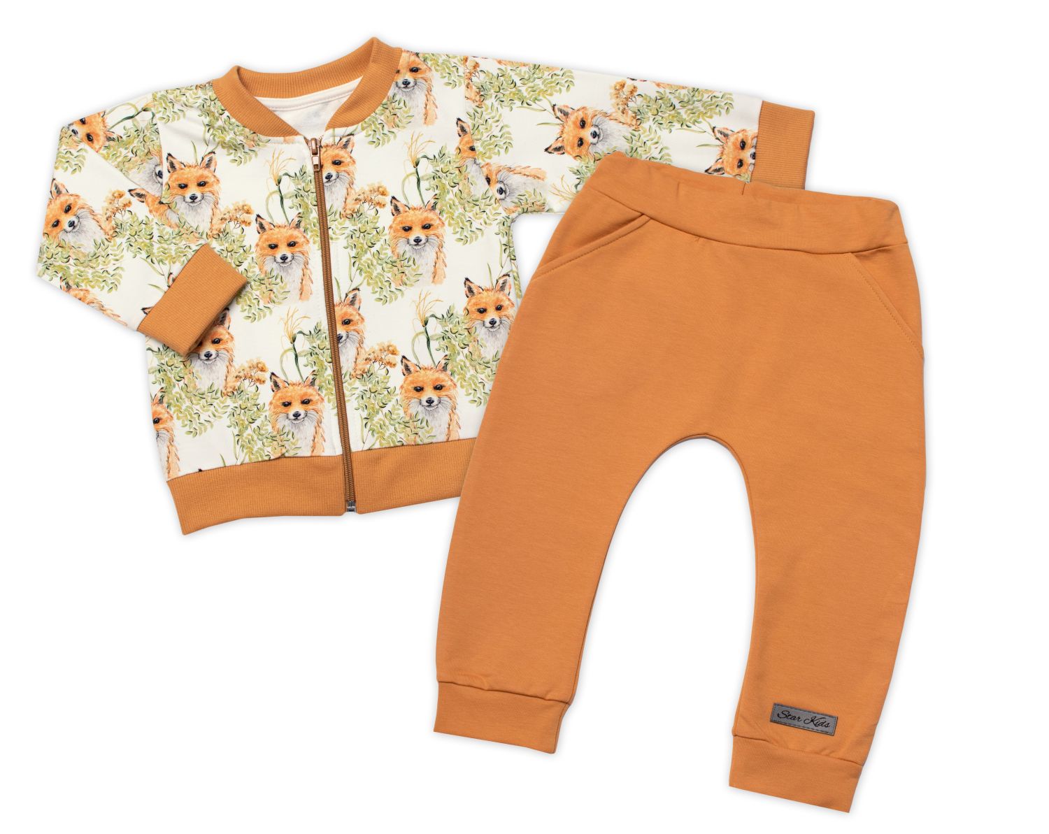- Stylová bavlněná tepláková souprava G-baby, Lišky - hořčicová, vel. 92