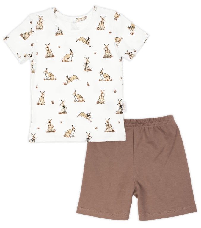 Tričko+kraťásky, bavlněný komplet Nicol, Rabbit, krémová/hnědá, vel. 122