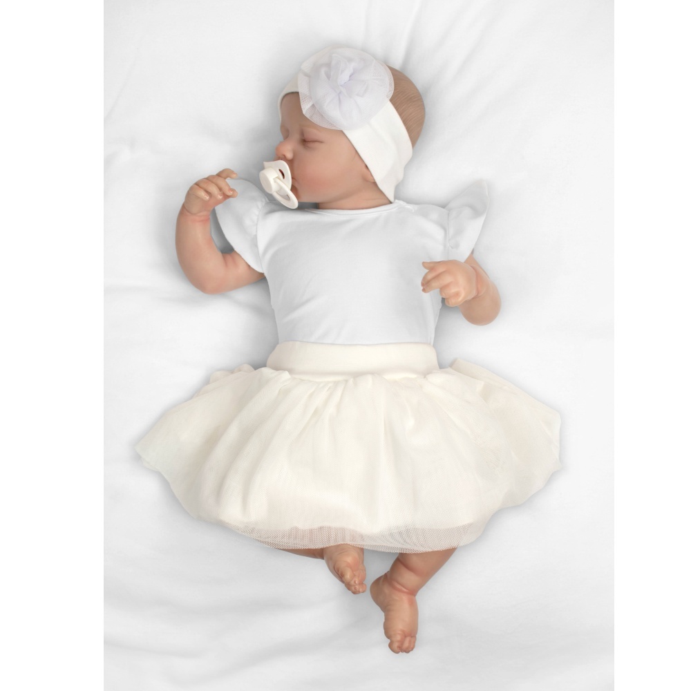 Vrchní volánek sukničky tvoří tyl, což zaručuje její elegantní vzhled.