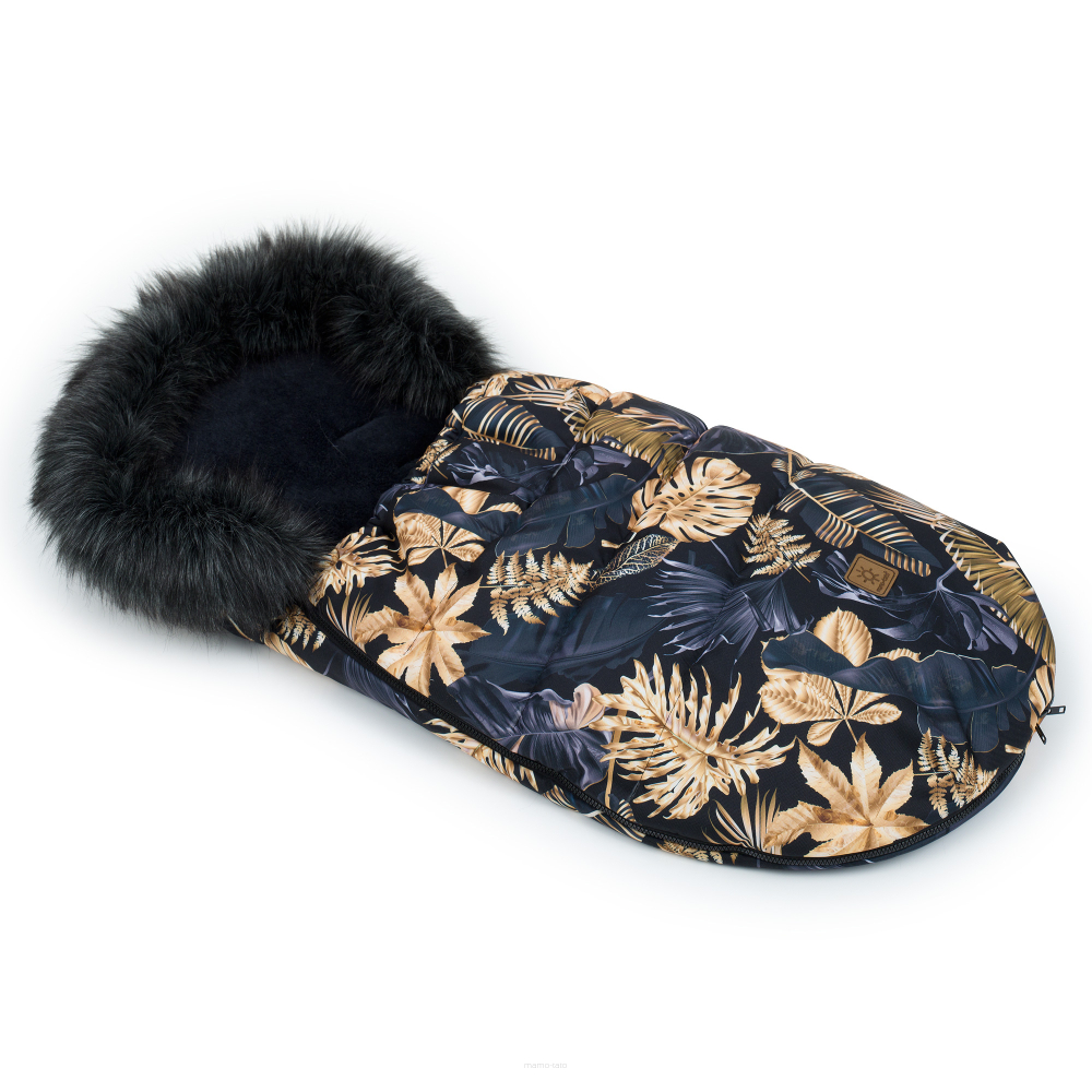 Zimní fusak Lux s kožešinkou, Listy 50 x 100cm - černý/zlatý