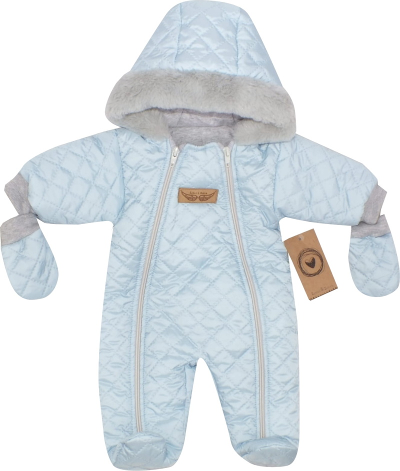- Zimní prošívaná kombinéza s kožešinou a kapucí + rukavičky Z&Z - modrá